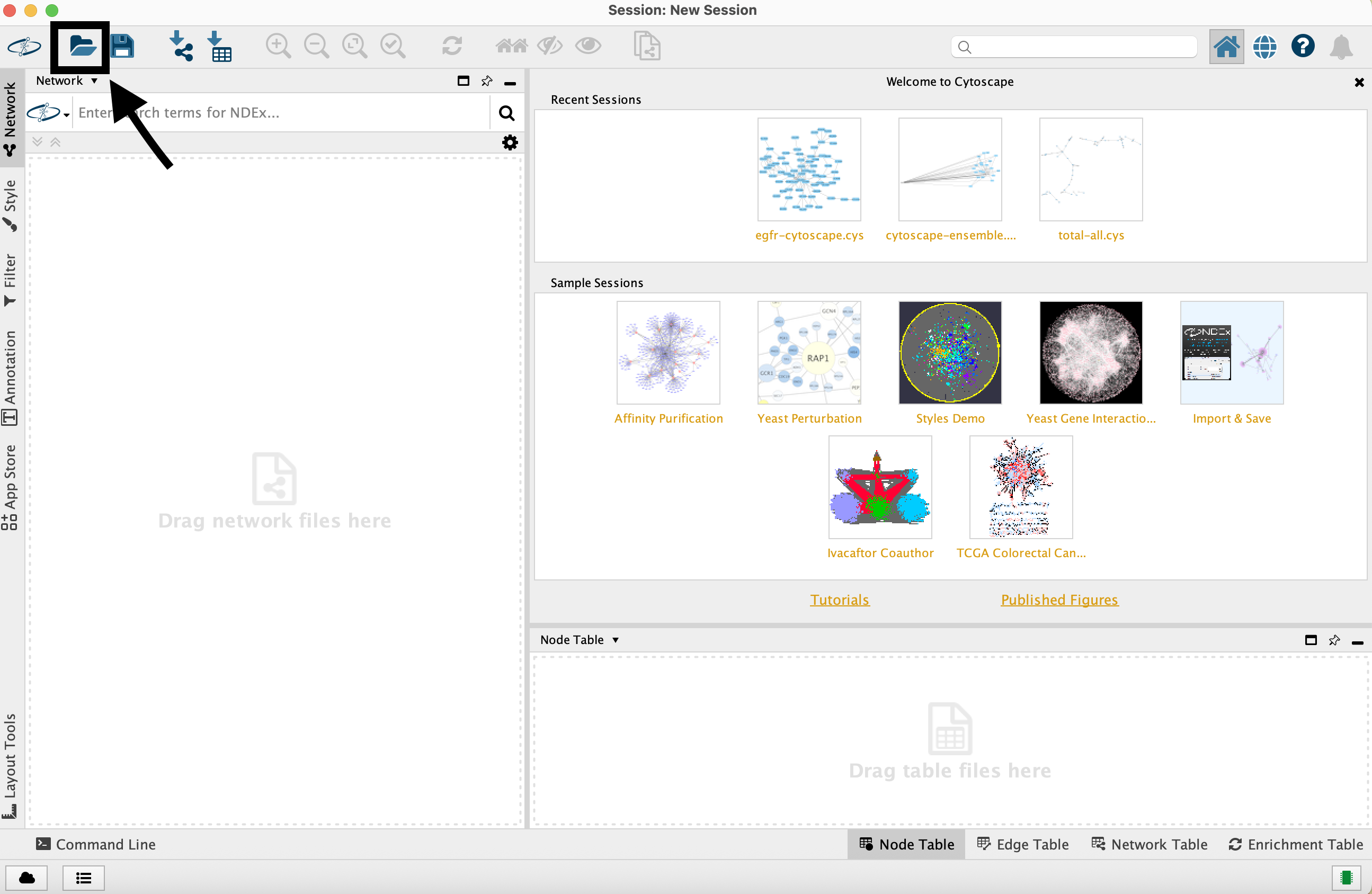 Cytoscape and clicking which button to upload the .cys file